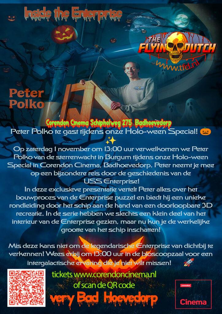 Voor de eerste keer hadden we een fanclubdag met een halloween tintje . Dit keer in Corendon Cinema te badhoevedorp. Op het programma stond een interressante lezing door Peter Polko van de sterrenwacht in Burgum . Peter nam oms mee op een bijzondere reis door de geschiedenis van de USS Enterprise!
