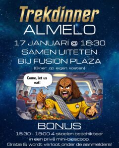 « Alle Evenementen Trekdinner 17 januari-18:30 - 23:59 « Heroes Dutch Comic Con Geeks & Freaks » Toevoegen aan kalender Google Calendar iCalendar Outlook 365 Outlook Live Gegevens Datum: 17 januari Tijd: 18:30 - 23:59